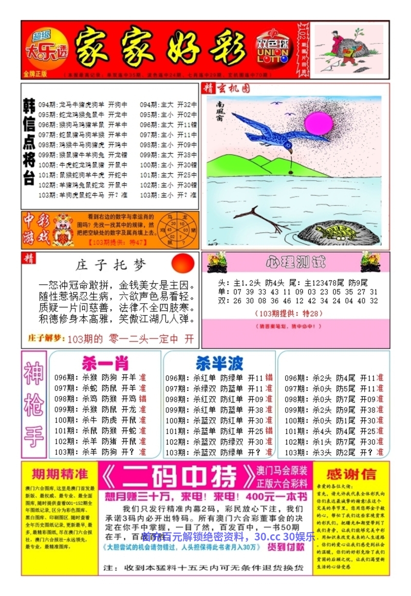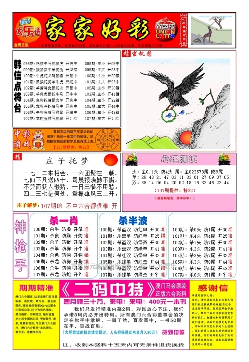 107期:吉美凶丑『吉美』开:鸡33准 |