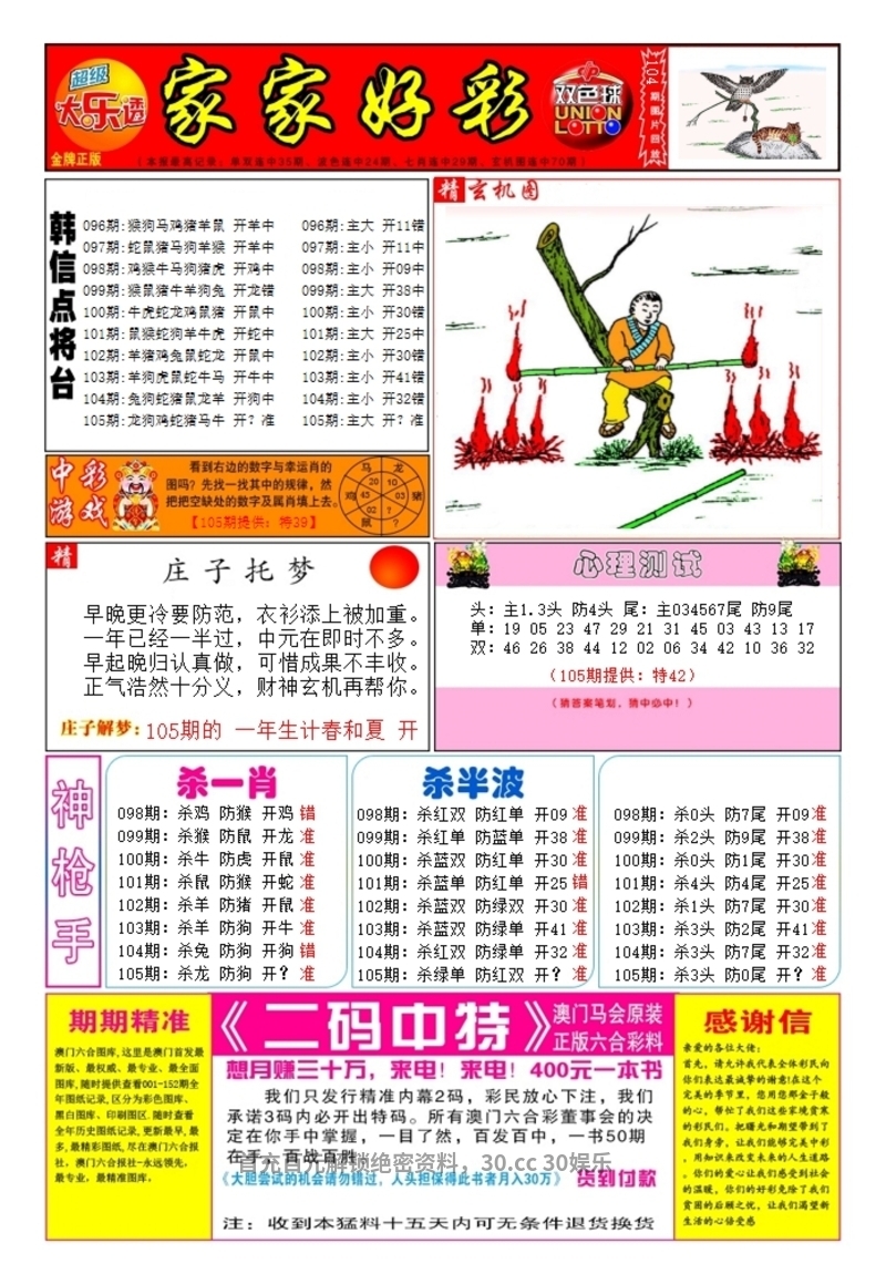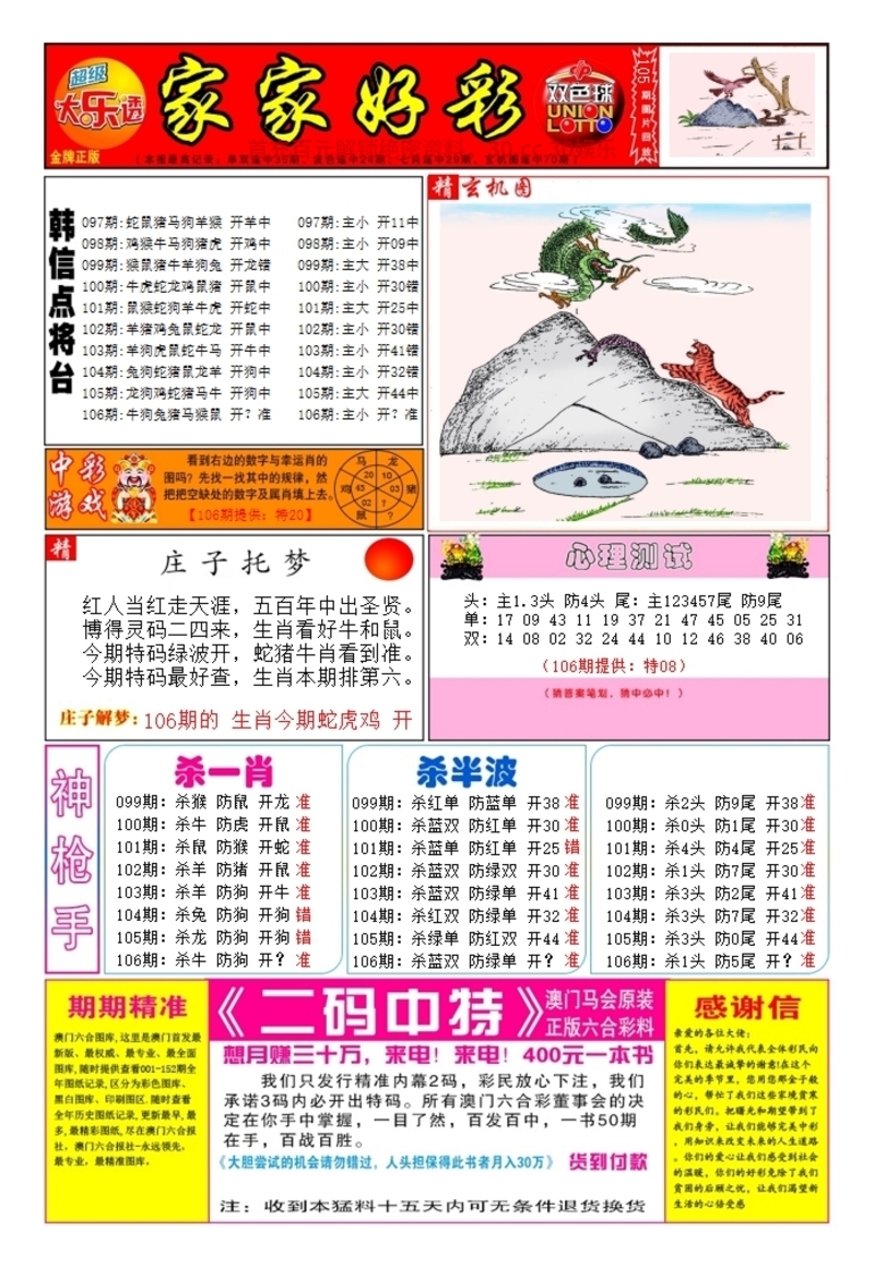 106期:吉美凶丑『凶丑』开:猪43准 |